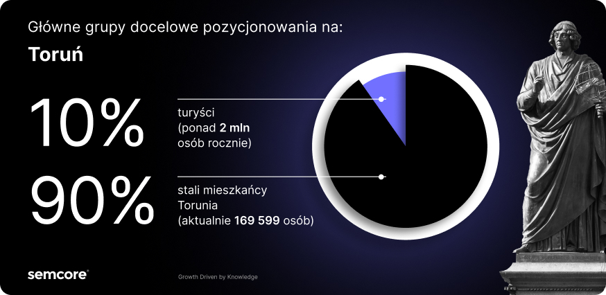 Toruń, jako miasto turystyczne, jest odwiedzany rocznie przez ponad 2 miliony gości (dane z UM i raportów turystycznych). Do tego, podobnie jak w innych dużych miastach, tysiące mieszkańców korzysta z wyszukiwarki Google na co dzień, aby znaleźć potrzebne produkty i usługi.